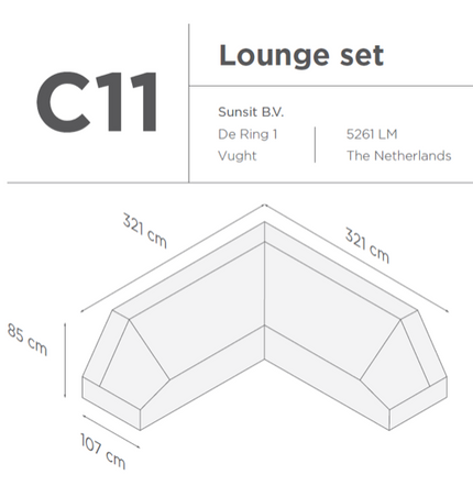 Afmeting hoes: 321 x 321 x 84 x 107 cm