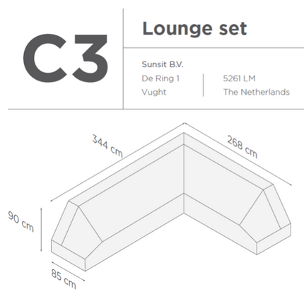 Afmeting hoes: 344 x 268 x 85 x 90 cm
