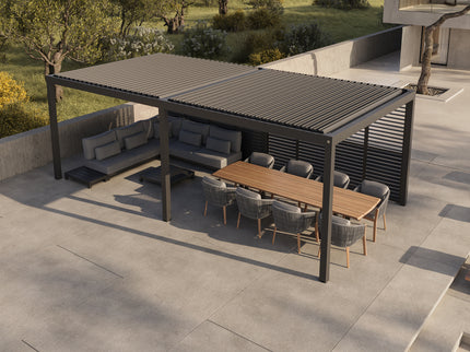Wil je een nog grotere overkapping creëren? Dan zijn er diverse extra elementen beschikbaar, waaronder extension sets en side extensions die perfect passen bij de afmetingen van de basisoverkapping.