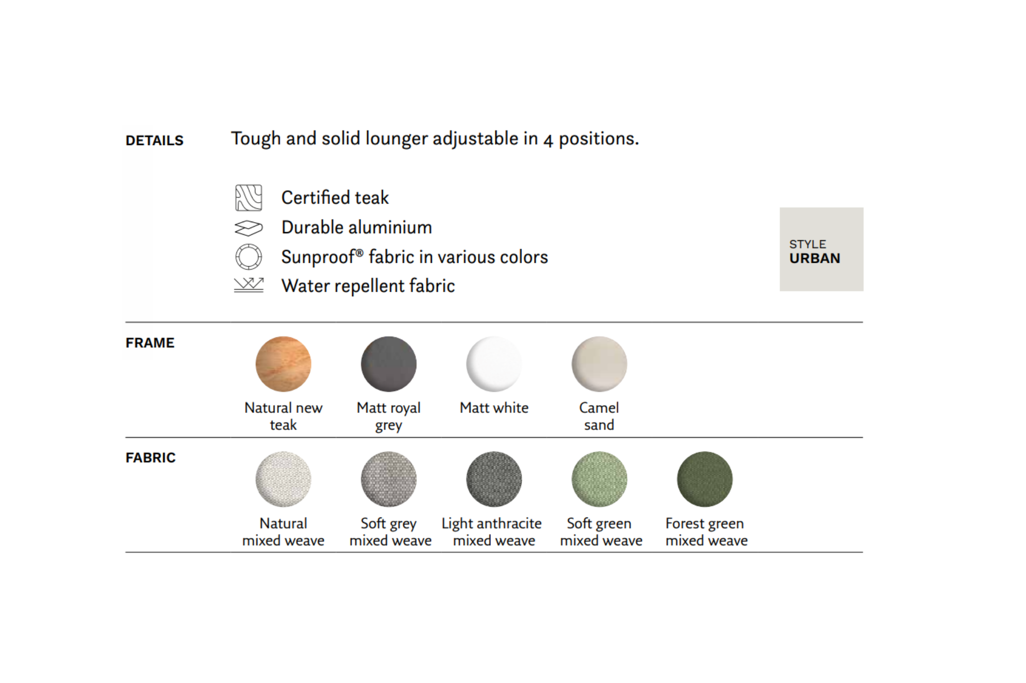- Deze lounger is robuust en verstelbaar in vier posities, zodat u altijd de ideale houding vindt om te relaxen.