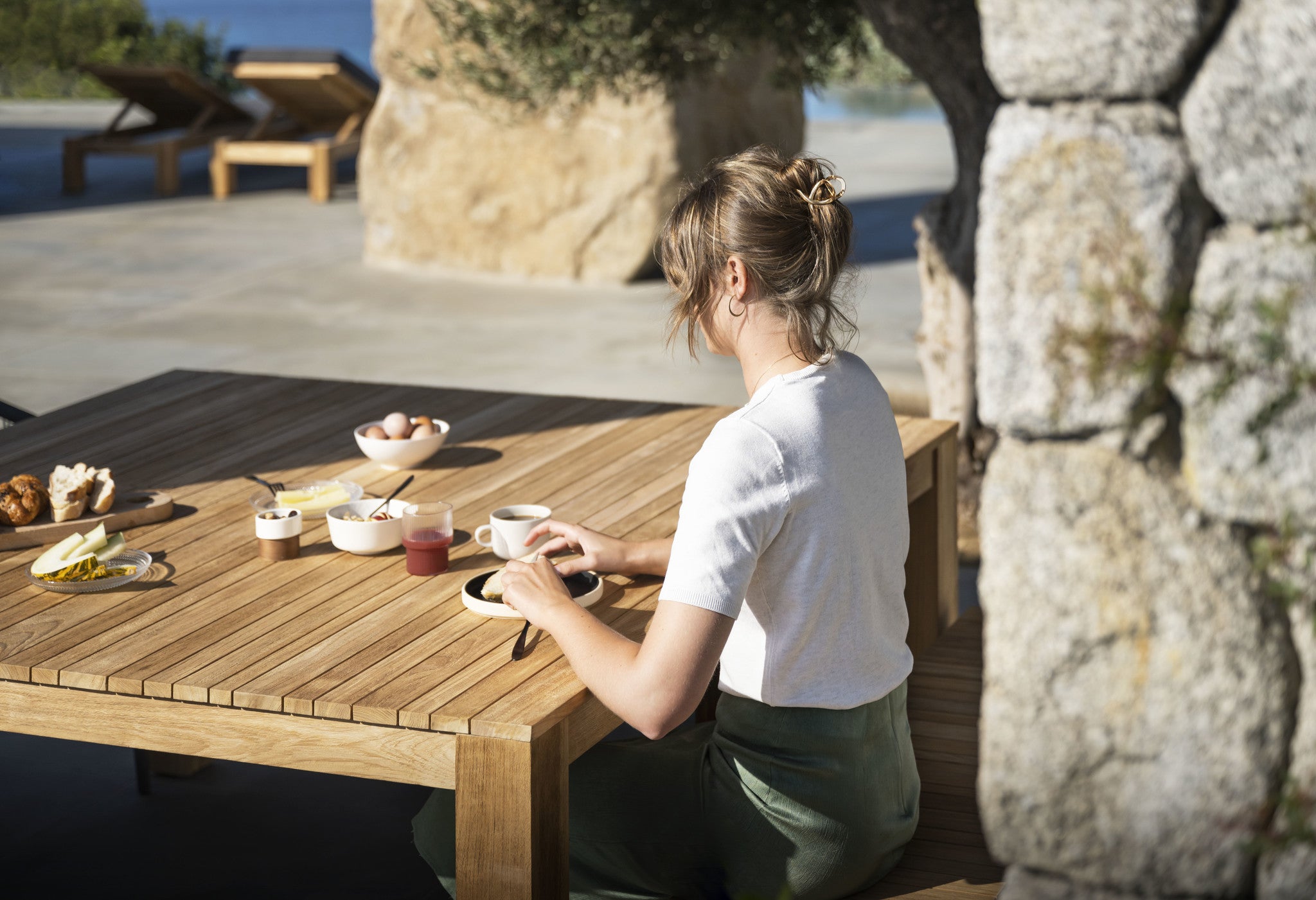 De Tecca serie is elegant en stoer tegelijk. De brede poten in combinatie met de planken overdwars maken deze tuintafel uniek. Een voordeel van deze tuintafel dat hier iedere tuinstoel met deze tafel te combineren is.