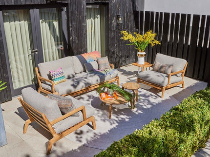 De Termoli Sofaset is de loungeset wanneer je denkt aan comfort en luxe. Deze loungeset is volledig gemaakt van duurzaam en gecertificeerd teakhout, dit geeft deze set een prachtige luxe uitstraling!  Deze set is een ultieme uitkomst voor heerlijke zomeravonden met vrienden en/of familie in de tuin. Maar is uiteraard ook uitermate geschikt voor een heerlijk avondje loungen op een doordeweekse avond met je gezin onder het genot van een heerlijk hapje en drankje.