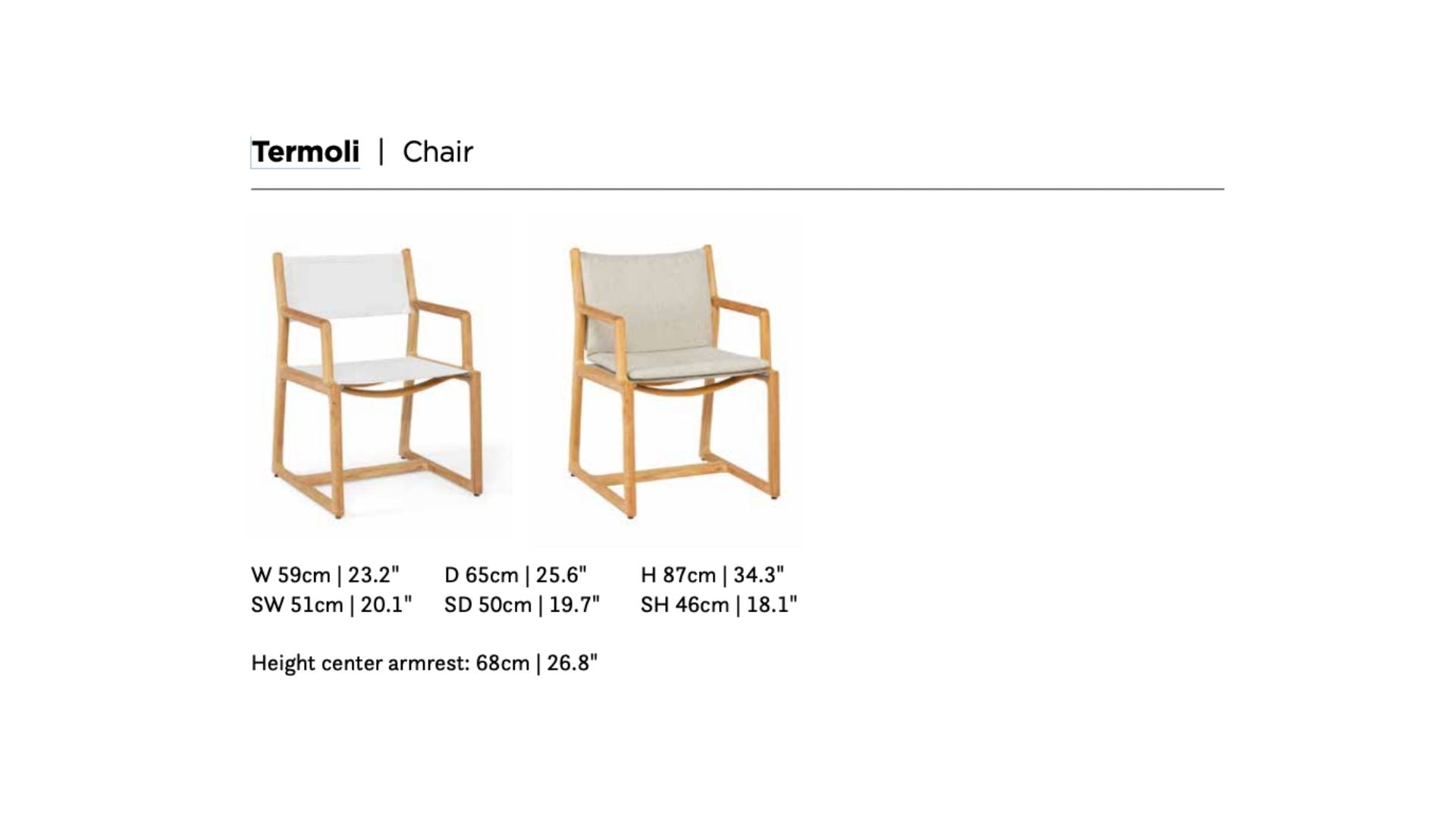 De Termoli dining chair is verkrijgbaar met twee verschillende kleuren textilene, zodat u de stoel perfect kunt afstemmen op uw persoonlijke stijl: