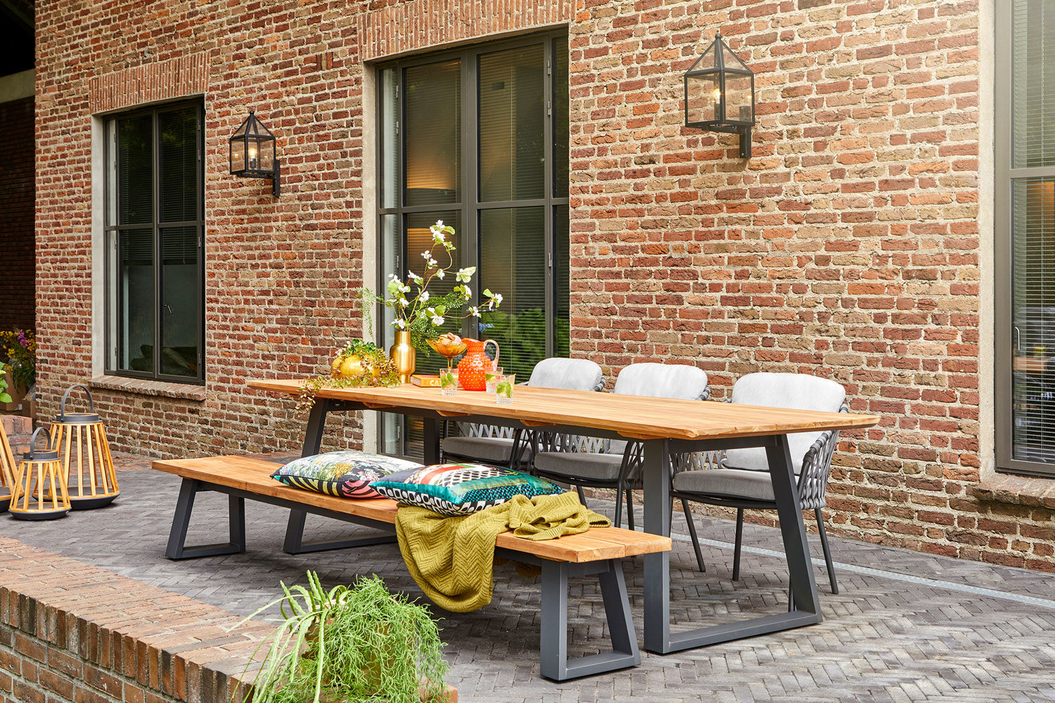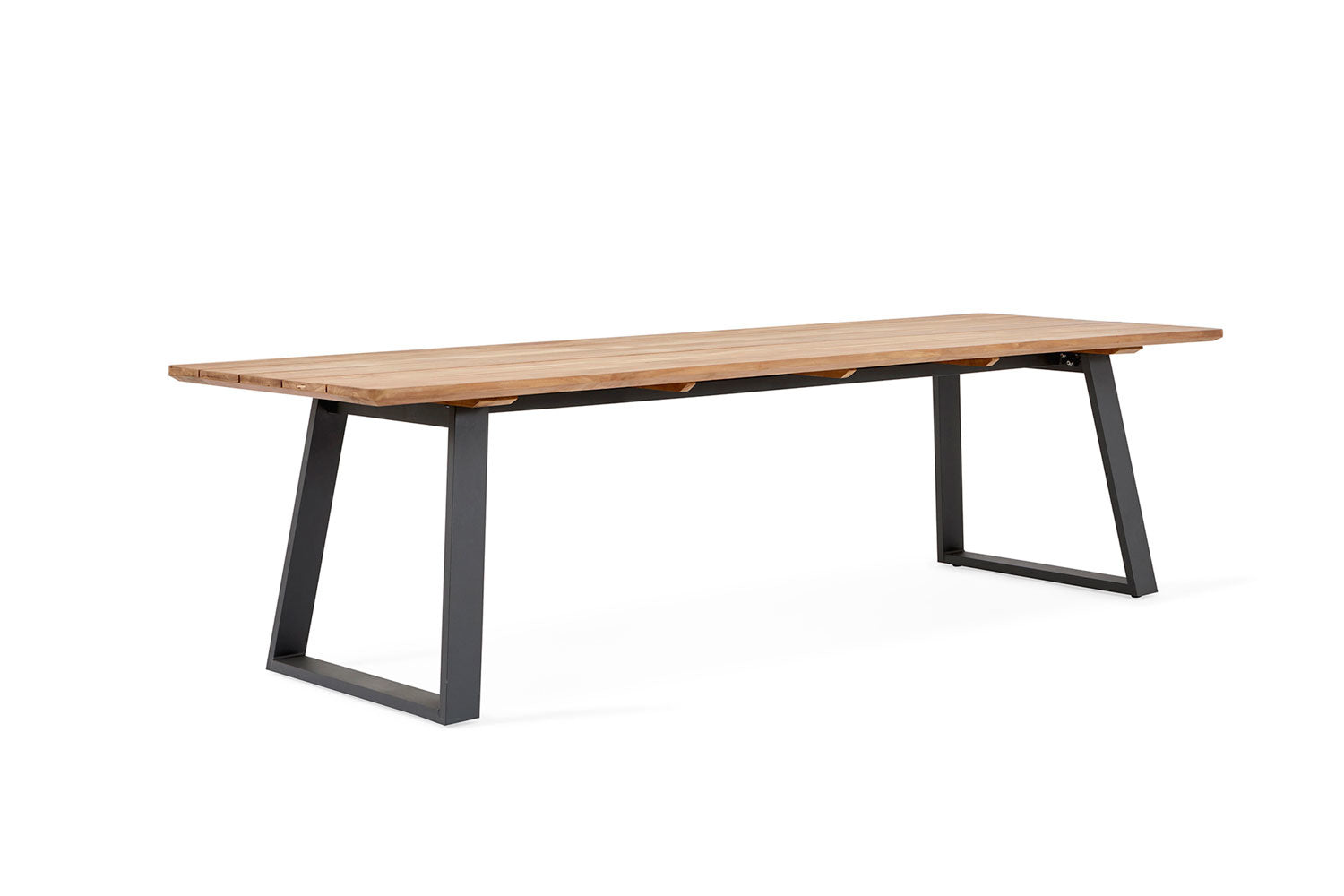 • Het tafelblad bestaat uit brede teakhouten planken