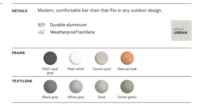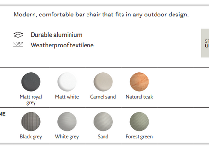- Kies voor armleuningen van aluminium of teak voor een extra vleugje luxe.