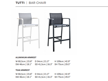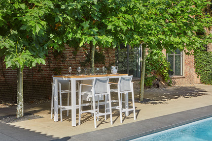 Tutti| Bar Stoel | Teak Armrests | Matt White Frame
