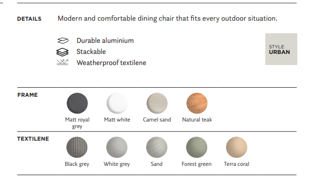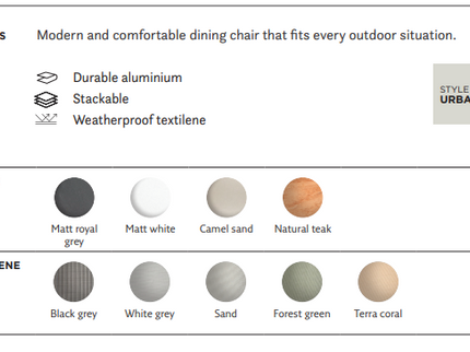- Duurzaam waterdicht textilene, wat zorgt voor een langdurige en onderhoudsarme ervaring, zelfs bij buitengebruik.
