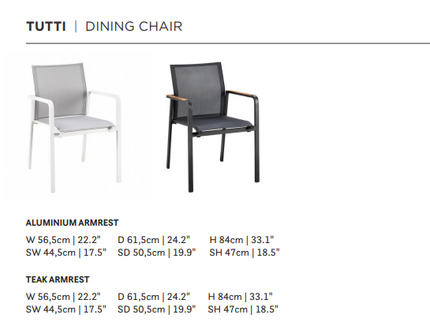 Met afmetingen van 57x62x84 cm, past deze stoel perfect in elk interieur. Geef uw eetruimte een upgrade met de veelzijdigheid en esthetische allure van de Tutti Diner Stoel.
