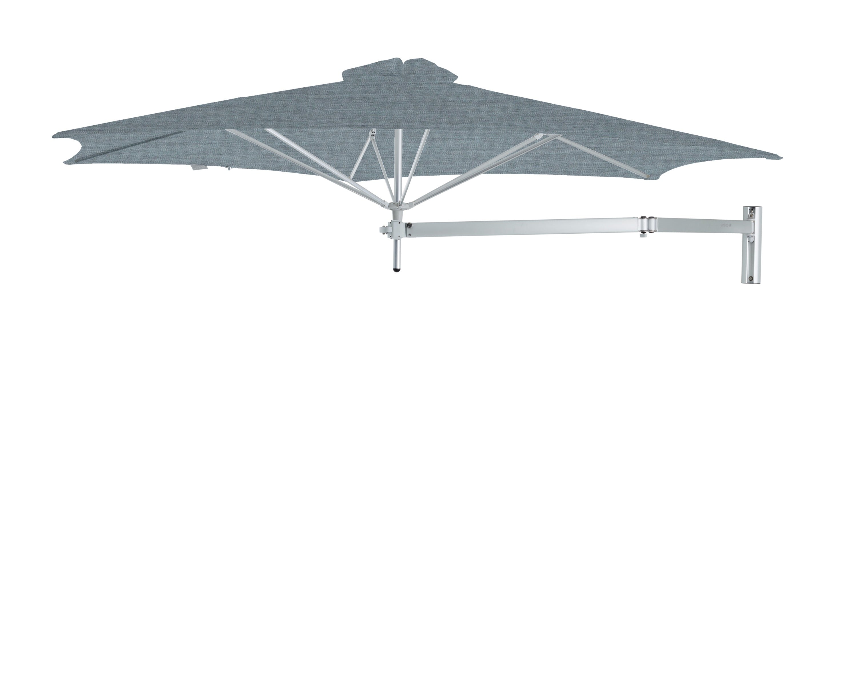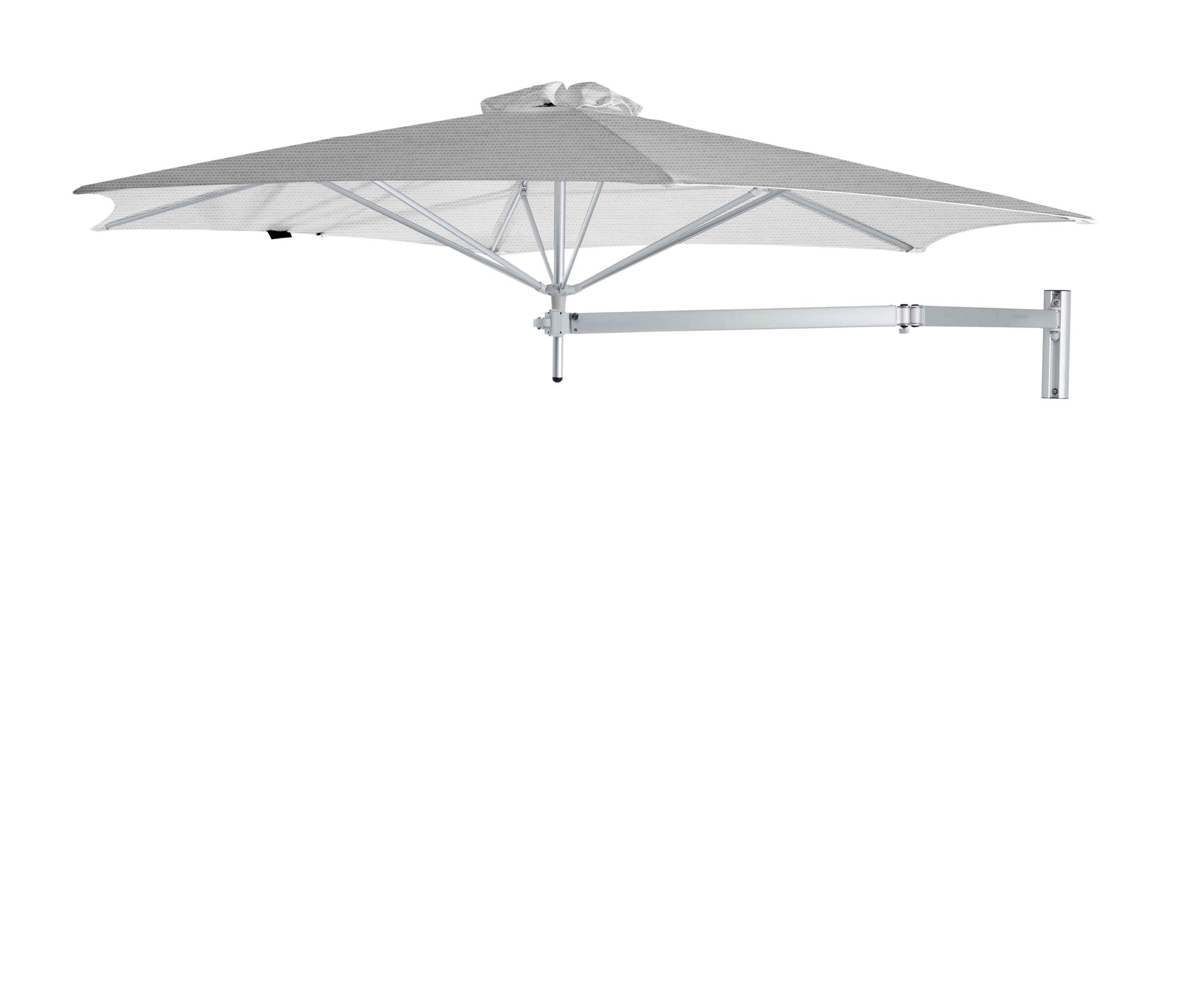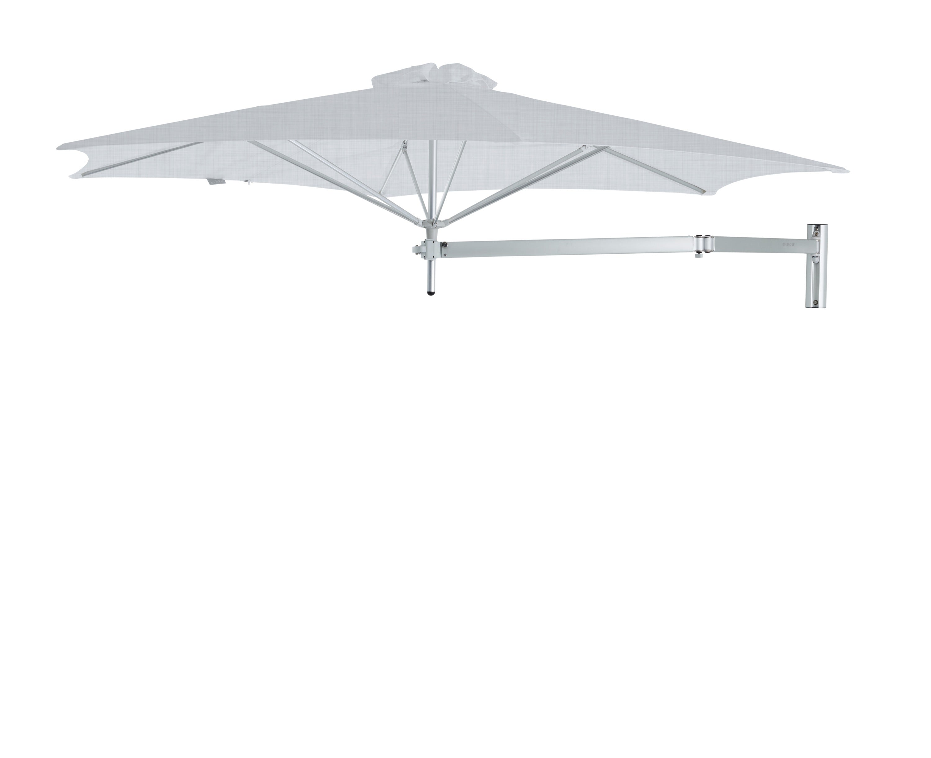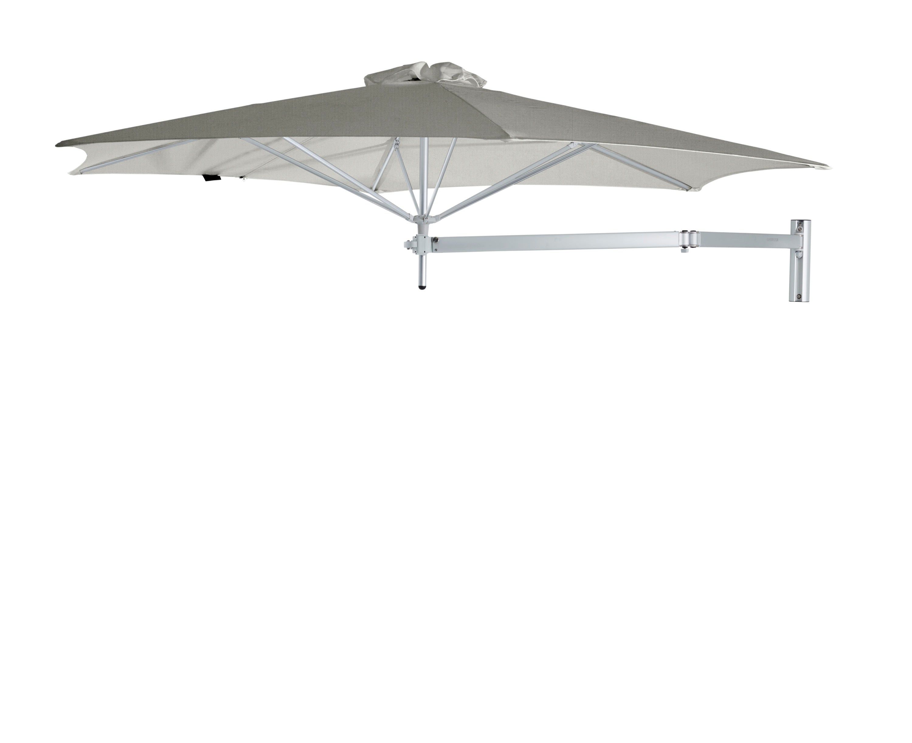 De Paraflex Wall wordt geleverd inclusief Neo-arm en muurbevestiging. Hierdoor kan de parasol eenvoudig aan een muur of stevige constructie worden bevestigd. De arm maakt het mogelijk om de parasol te draaien en te positioneren voor optimale schaduw gedurende de dag.