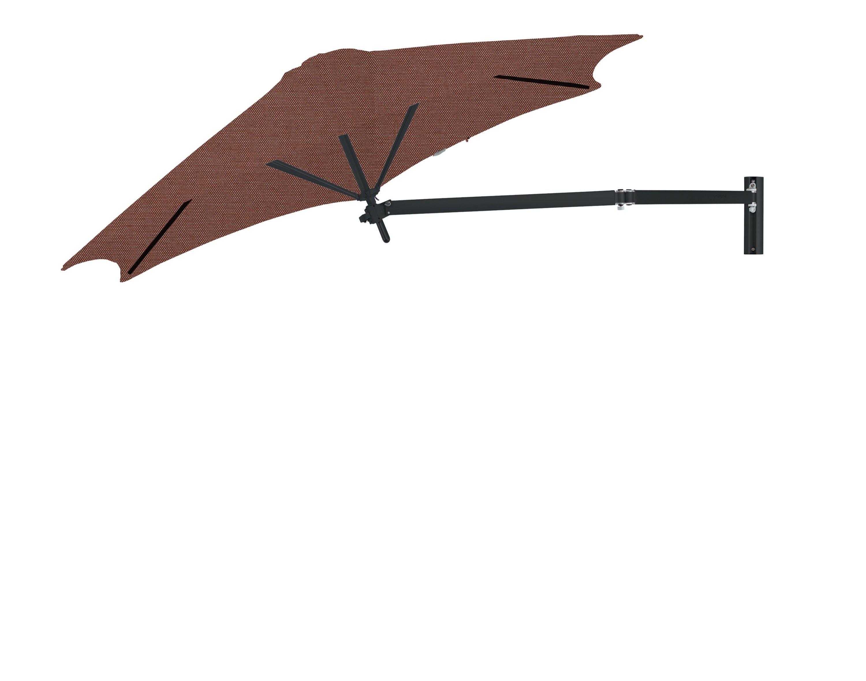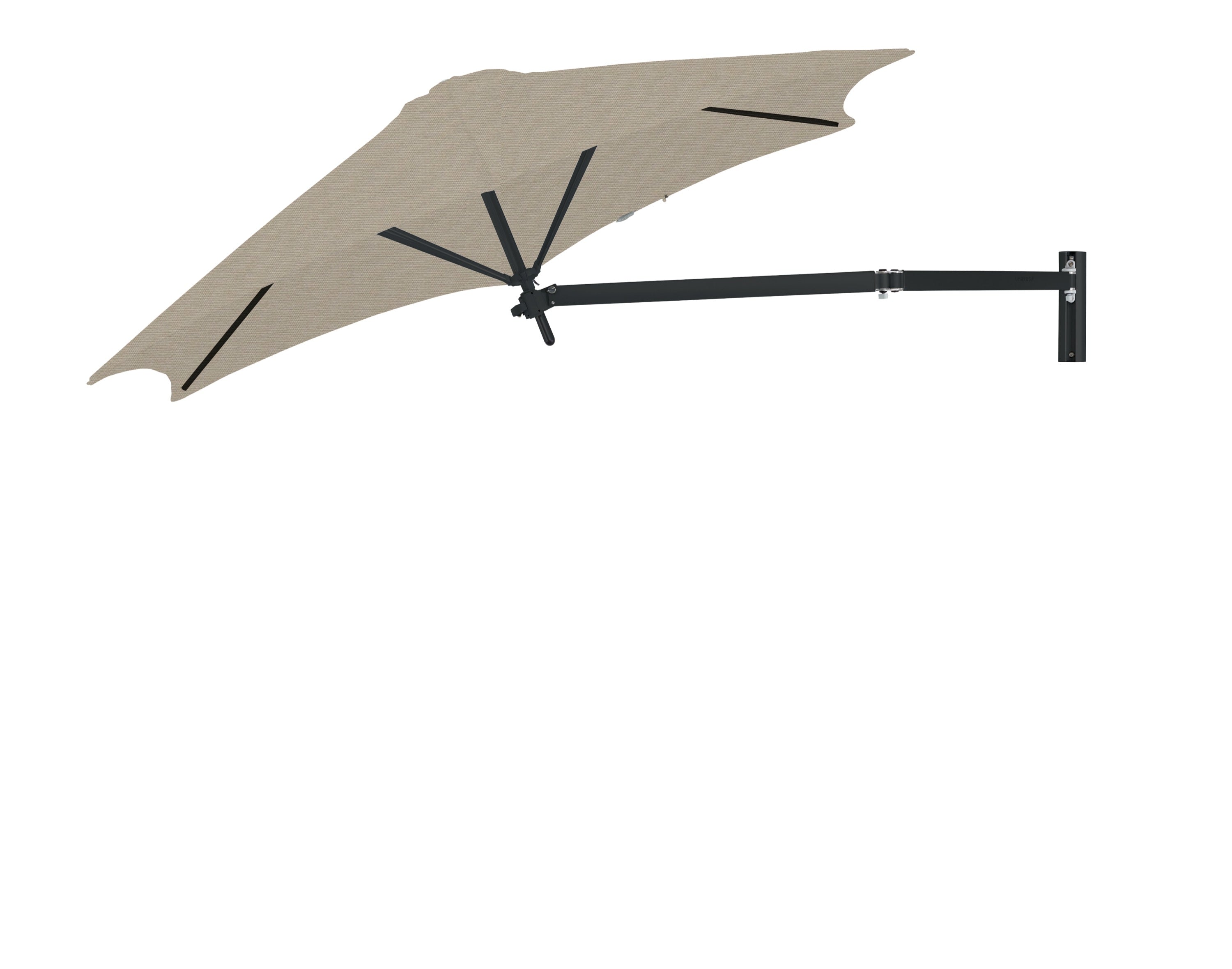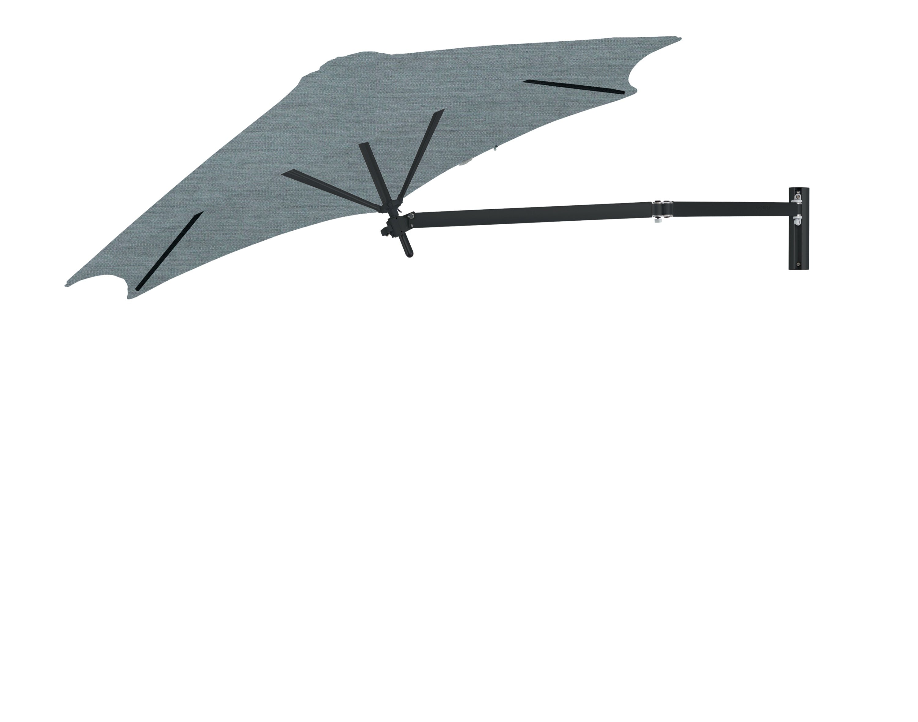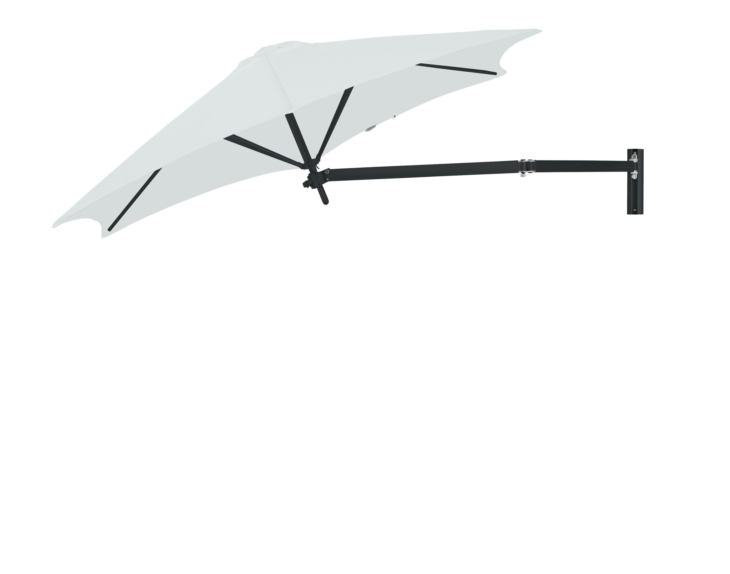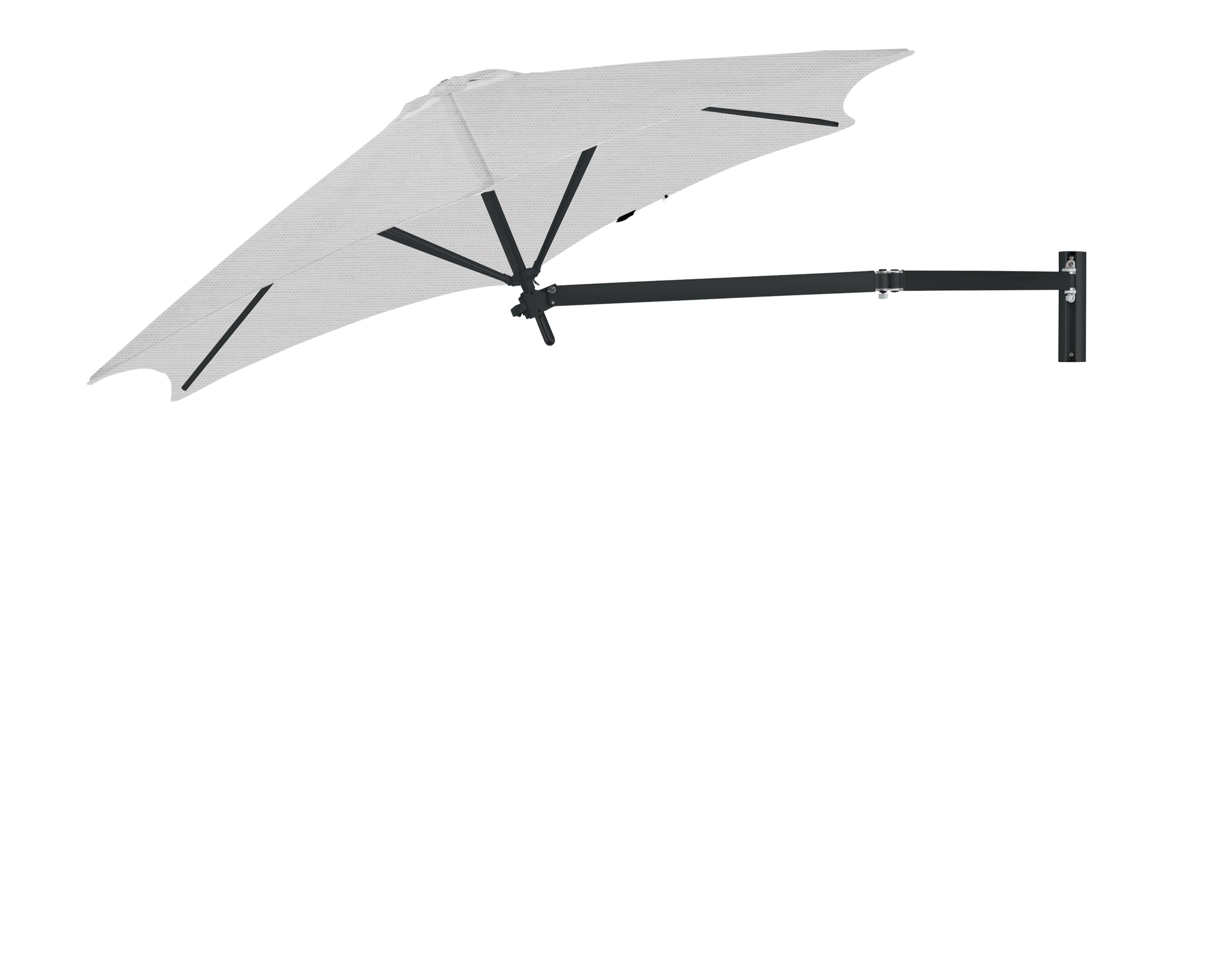 De Paraflex Wall wordt geleverd inclusief Neo-arm en muurbevestiging. Hierdoor kan de parasol eenvoudig aan een muur of stevige constructie worden bevestigd. De arm maakt het mogelijk om de parasol te draaien en te positioneren voor optimale schaduw gedurende de dag.