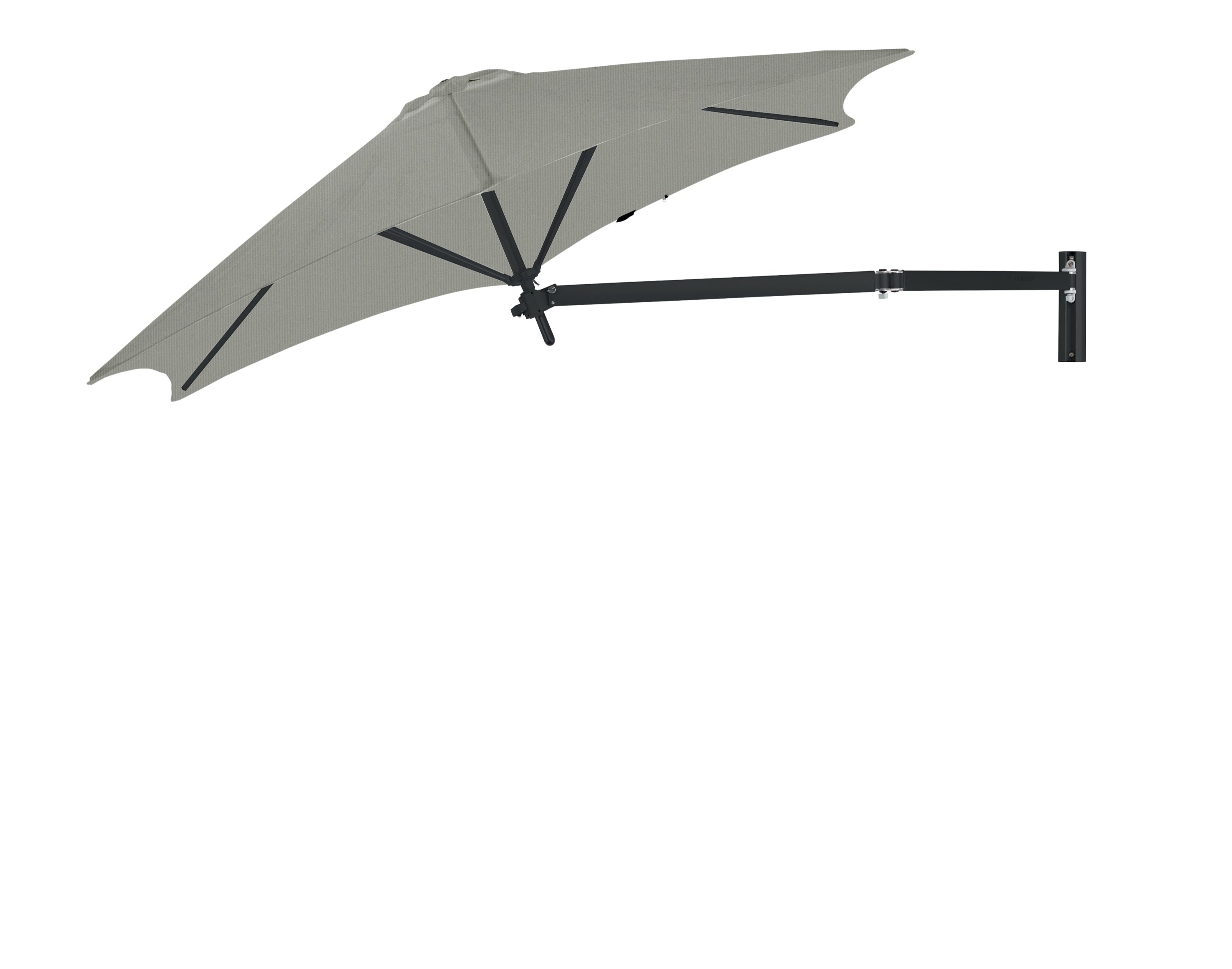 De Paraflex Wall is een innovatieve parasol die volledig anders werkt dan een traditionele parasol. In plaats van een centrale paal en parasolvoet wordt deze parasol bevestigd aan een muurbeugel met een flexibele arm. Hierdoor ontstaat een ruimtebesparende oplossing die maximale schaduw biedt zonder dat er een voet of paal op het terras nodig is.