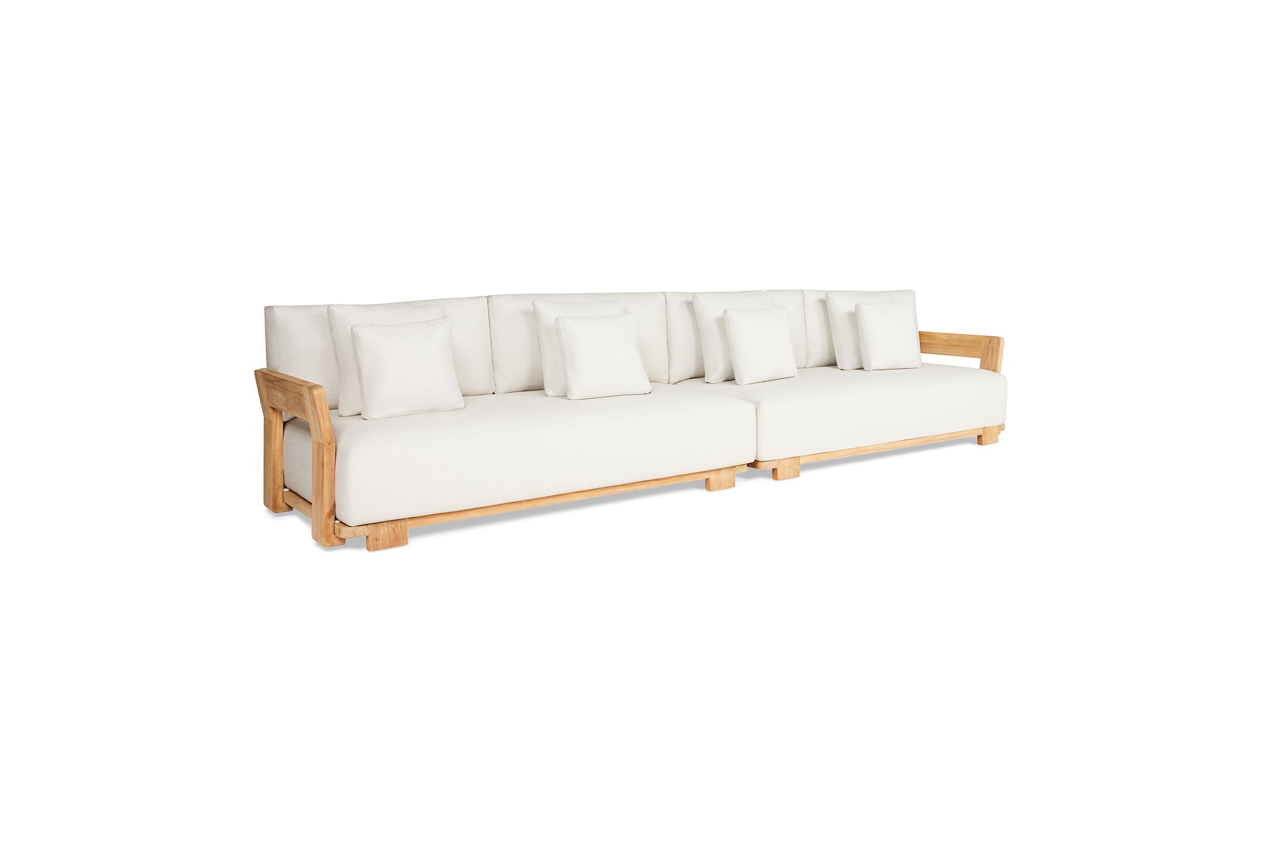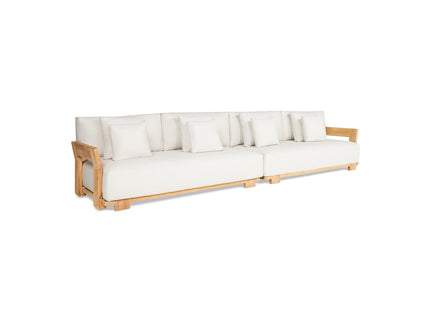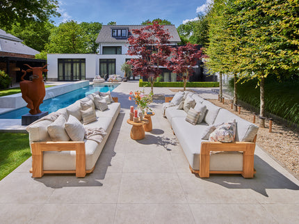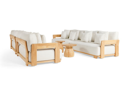 De SUNS Vento loungeset mag gezien worden. Een frame van teakhout met fijne rondingen en strakke afwerking. Open rug- en zijleuningen in een ijzersterke constructie. Royale kussens in natuurkleuren. De organische vormgeving maakt de SUNS Vento loungeset tegelijkertijd stijlvol en rustgevend.