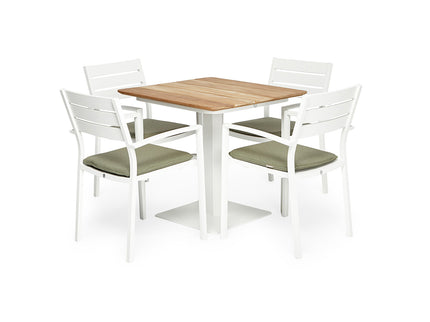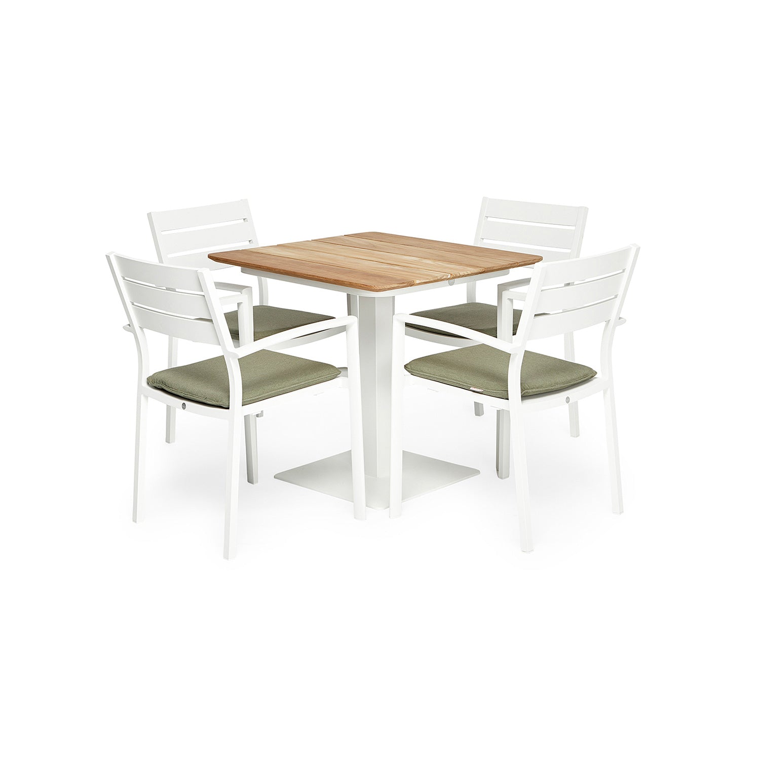 - Kies uit een tafelblad van hoogwaardig teak of duurzaam aluminium.